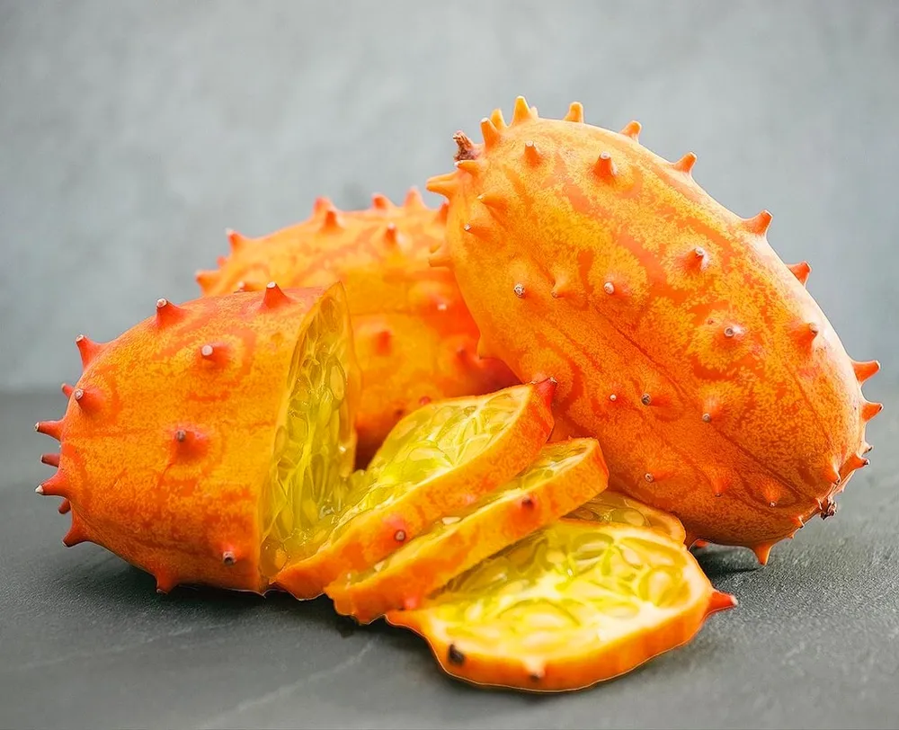 Родом из тропических районов Африки, кивано (лат. Cipura esculenta) является лианами с крупными листьями и необычными плодами-фруктами продолговатой формы, напоминающими зеленые огурцы или пузатых диковинных существ. Внутренняя мякоть плода ярко-желтого цвета имеет сладковато-огуречный вкус с легкой кислинкой. Кивано – относительно молодое растение в культуре. Его начали выращивать на коммерческой основе примерно в конце 20 века, и сегодня он становится все более популярным во многих странах.
