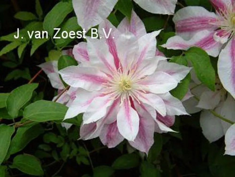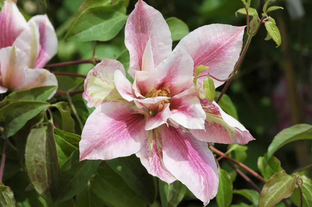 Клематис Андромеда – это восхитительный вид, который покоряет своей красотой и неприхотливостью. Его крупные, махровые цветки диаметром до 15 см украшены нежным, светло-розовым окрасом с белыми пятнами на лепестках, словно звездное небо, за что сорт и получил свое название.