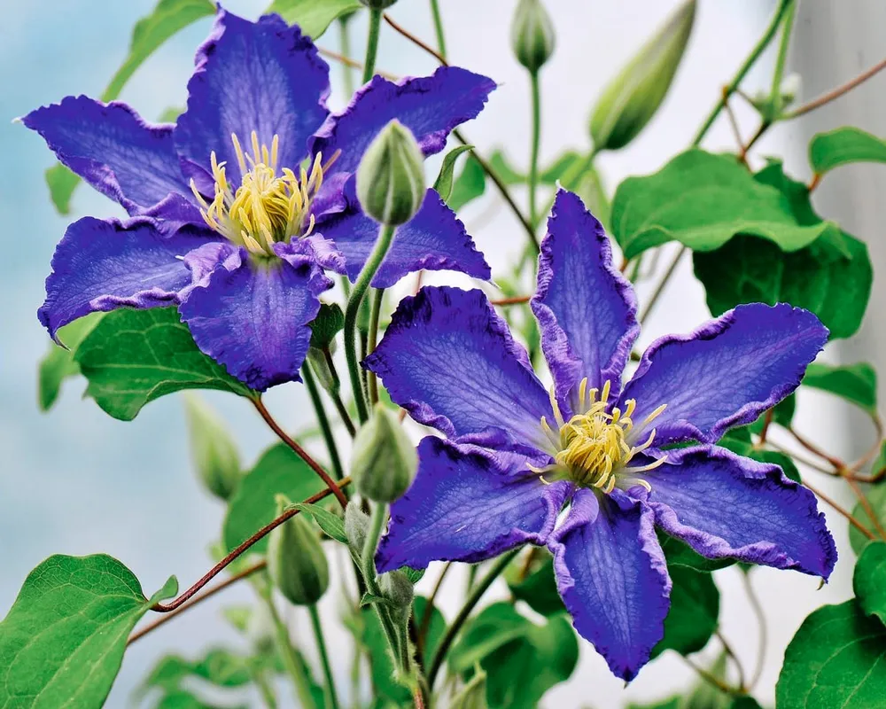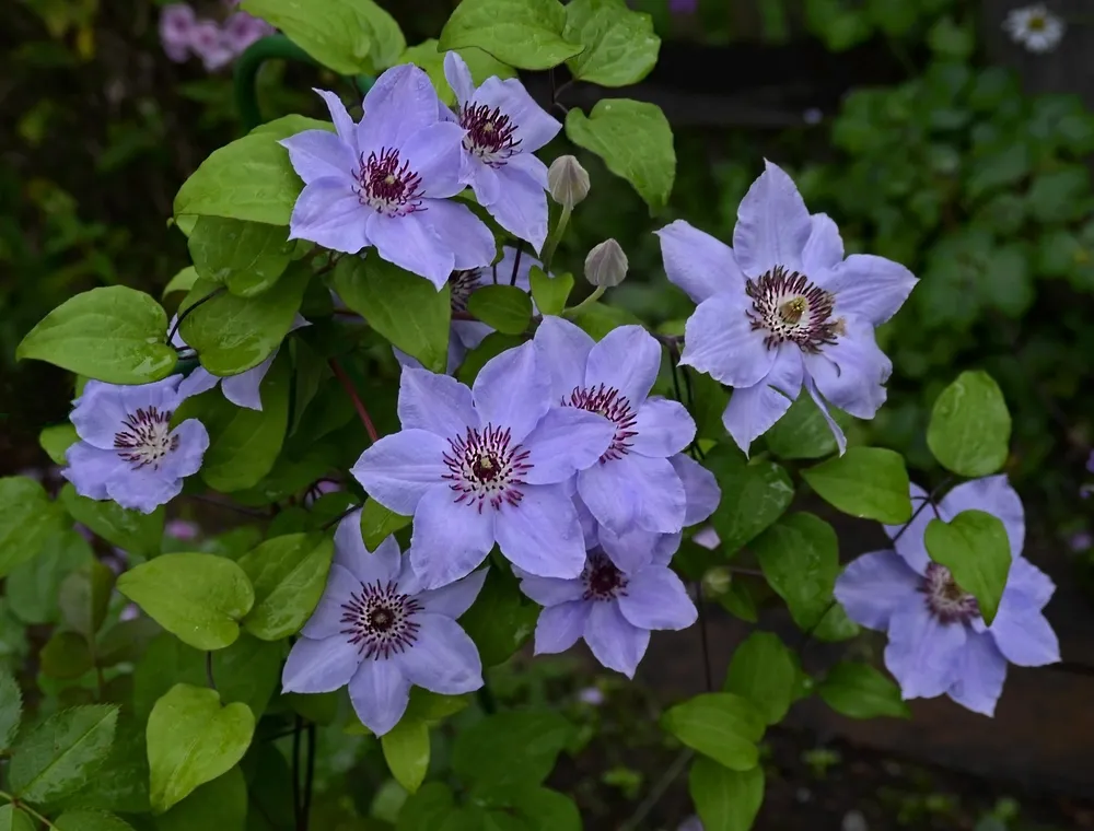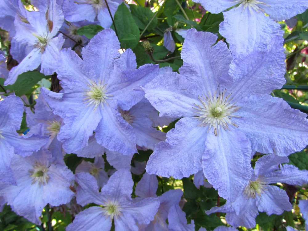 Это растение поражает своим пышным цветением в течение всего летнего сезона. Цветы клематиса Блю Пилар окрашены в нежный, голубовато-синий оттенок с легким пурпурным отливом, напоминающим небо после дождя. Их форма – классическая для видовых клематисов: воронкообразные, с длинными лепестками и контрастной серединкой. Сорт характеризуется обильным цветением, что позволяет украсить сад целым потоком ярких цветков.