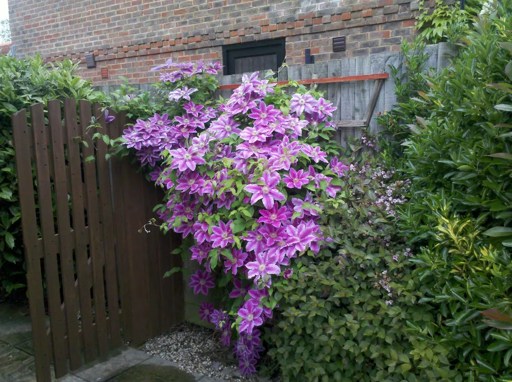 Клематис «Доктор Руппель» – лианный вид, который нуждается в формировании.