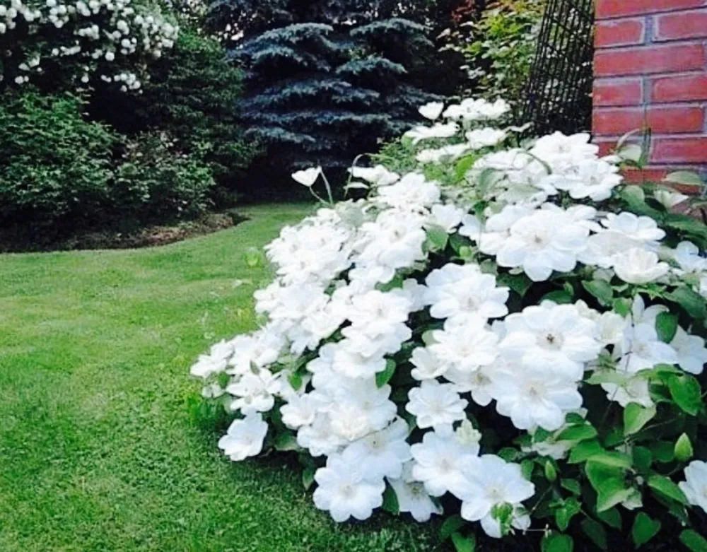 - Клематис ‘Аляска’: В отличие от Джемзи Крем, у которого цветки более крупные и махровые, ‘Аляска’ имеет более мелкие и простые цветки.