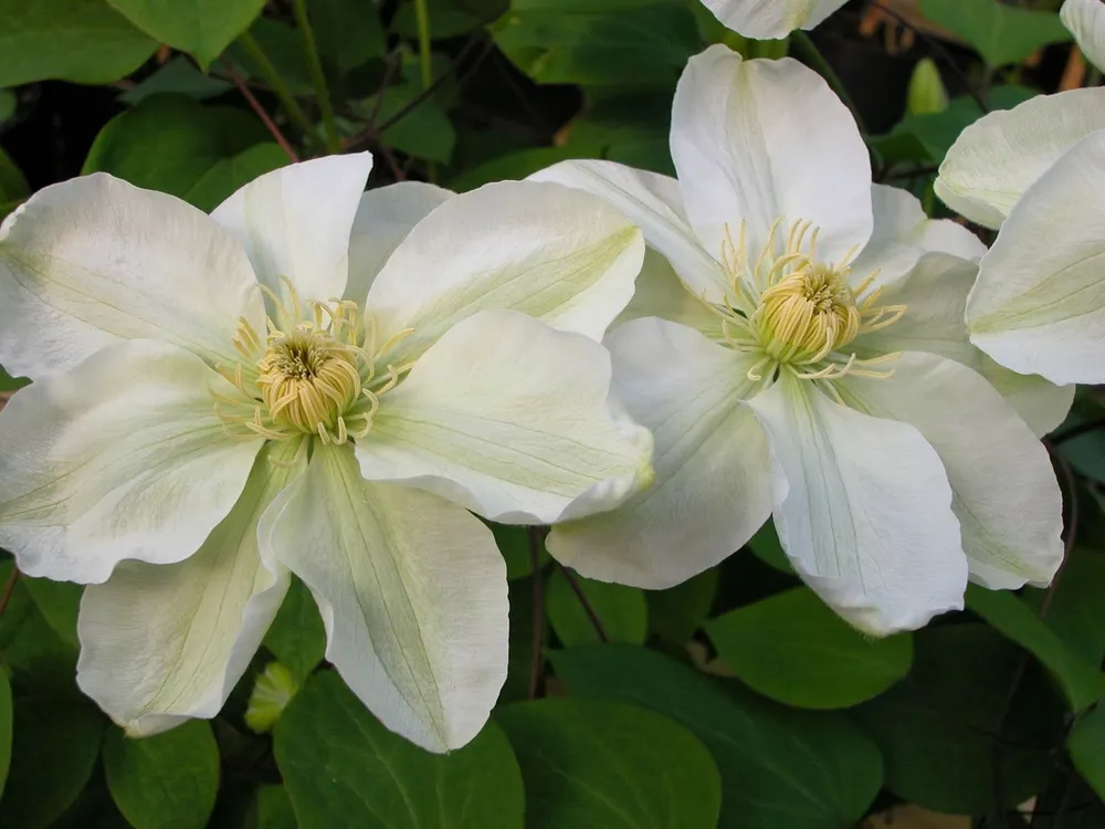 - Клематис ‘Виктория’: ‘Виктория’ отличается яркими белыми цветками с кремовым центром, в то время как Джемзи Крем обладает чисто кремовой окраской.