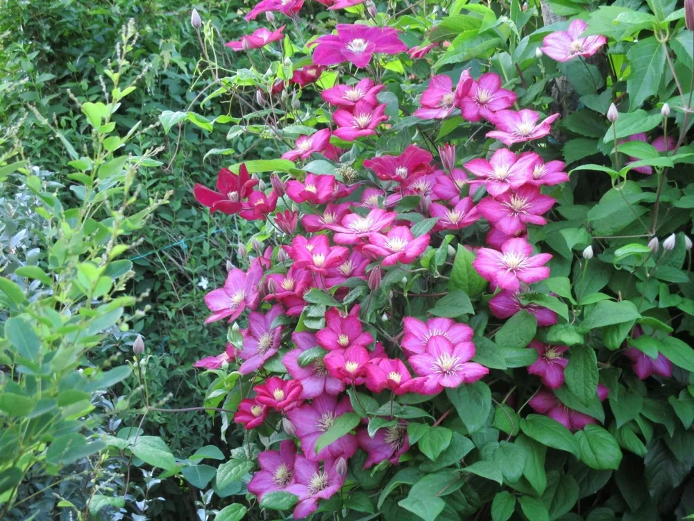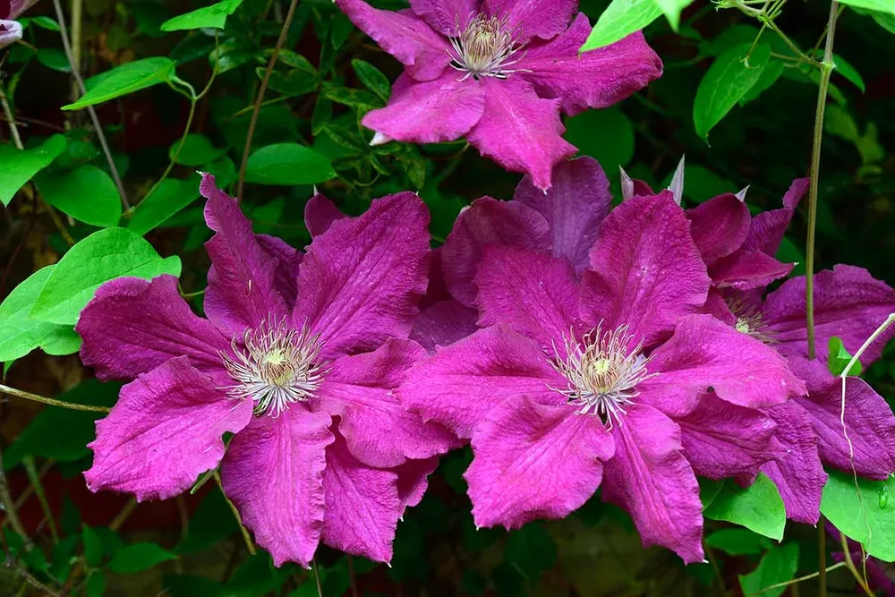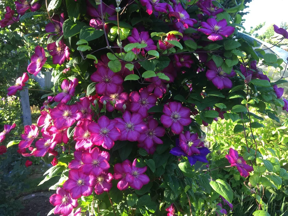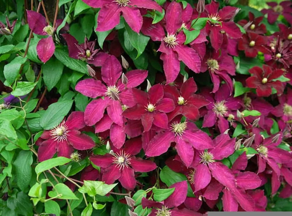 Сочетая элегантность с практичностью, клематис Эрнест Маркхам станет изюминкой вашего сада на долгие годы.