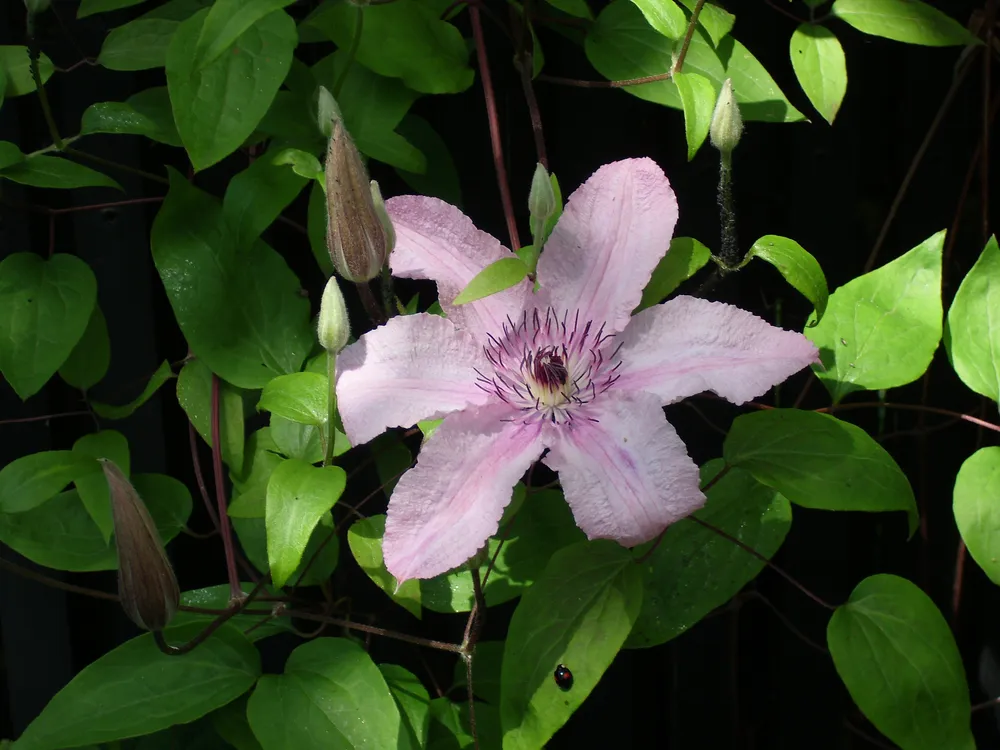 Фэйридаст отличается от других сортов клематисов своей уникальной цветовой гаммой – нежно-розовые цветки переливаются на солнце, создавая ощущение волшебства.