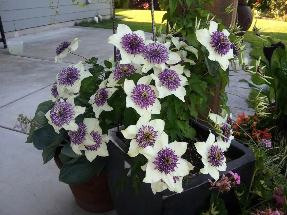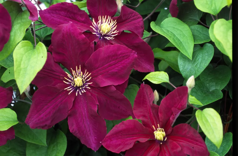 Клематисы группы крупноцветковых плетистых клематисов, к которой относится Оберек, отличаются своими махровыми цветками и высокой морозостойкостью.