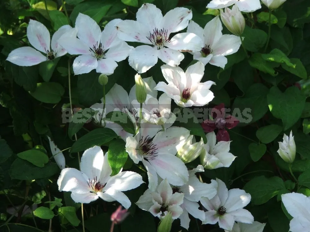 В молодое возрасте нужно прищипывать верхушки побегов для стимуляции бокового ветвления. В течение сезона удаляйте отмершие цветки (цветущие клематисы).