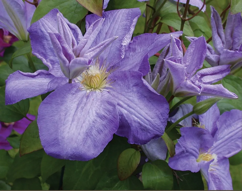 Клематис Принц Чарльз – это сорт, который покорил сердца многих садоводов своим необыкновенным цветением. Он относится к группе крупноцветных клематисов с полумахровыми цветками диаметром до 12 см. Выведенный в Голландии, этот сорт стал настоящим хитом благодаря своей неприхотливости и экзотическому виду.