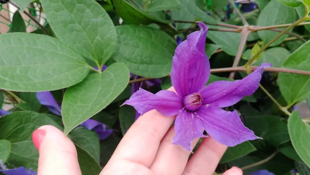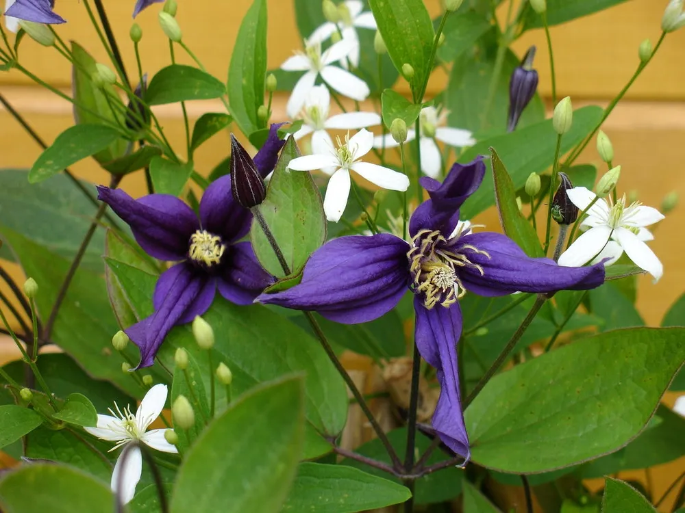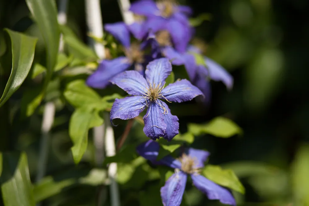 Клематис Сен-но-Казе обычно растет в виде плетистого куста и нуждается в опоре.
