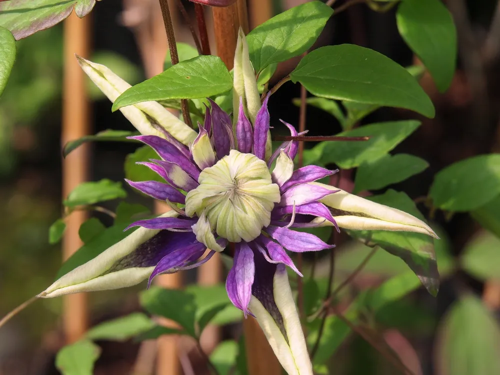 Клематис Тайга PBR – это лиана, которая может достигать высоты до 3 метров. Для того чтобы сорт выглядел более красиво и эффектно, его необходимо формировать. Формирование клематиса заключается в обрезании лишних побегов и подвязывании растения к опоре.