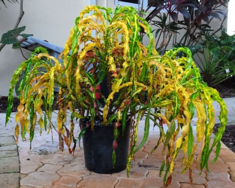 Кодиеум — нежное растение, которое может быть чувствительным к перепадам температуры и сухому воздуху. Важно поддерживать оптимальный микроклимат: температура воздуха должна быть в пределах 18-24°C, а влажность — 50-60%. Регулярное опрыскивание листьев водой поможет повысить влажность воздуха вокруг растения.