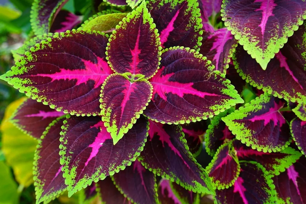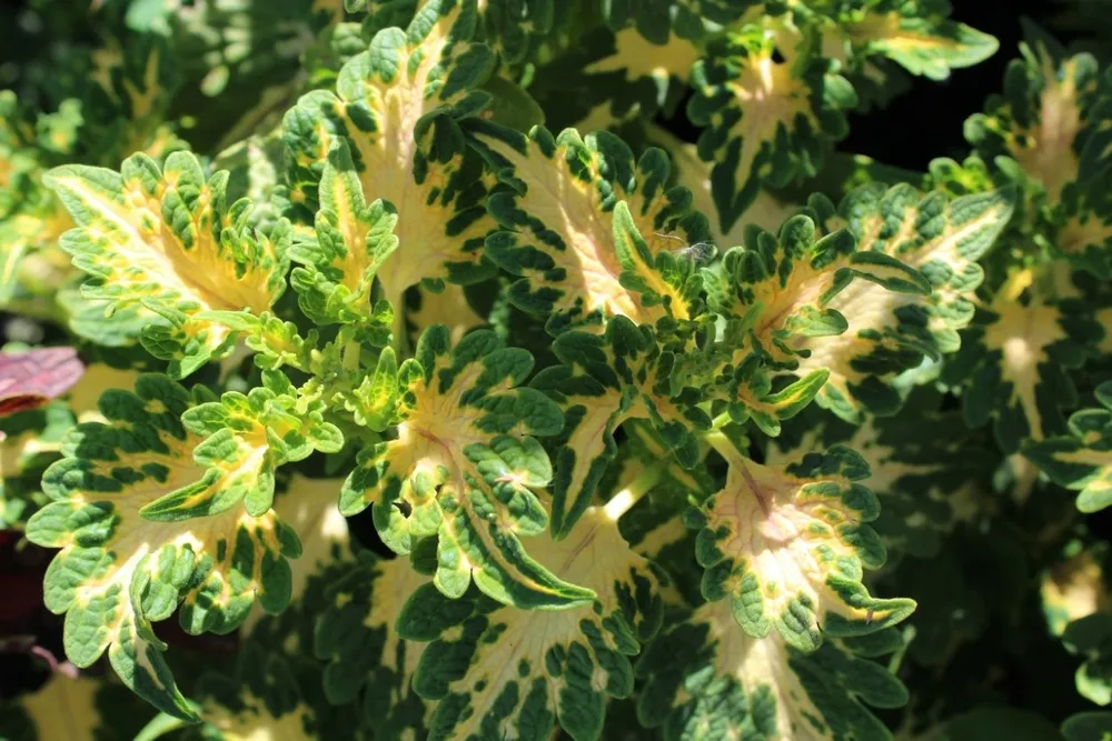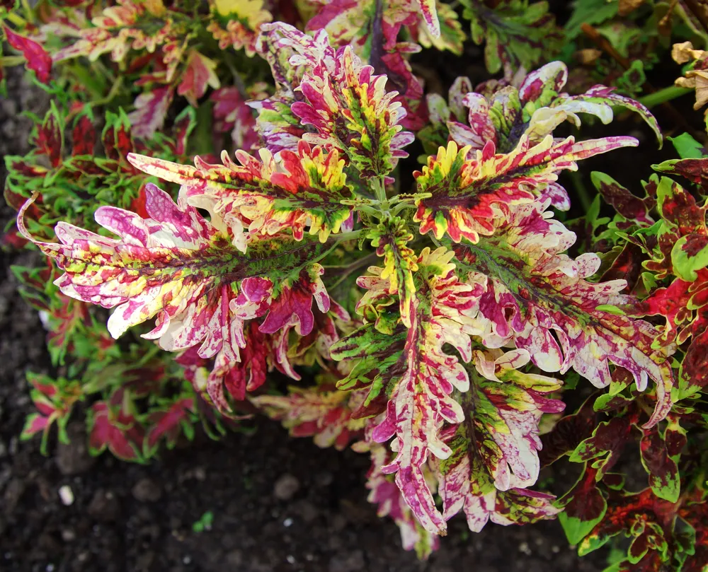 Колеус Тэррено пестрый – это декоративный однолетний или многолетник, который покорил сердца садоводов своей яркой и разнообразной листвой. Этот сорт принадлежит к роду колеусов (Coleus), который насчитывает около 150 видов. Колеус Тэррено пестрый выделяется среди своих собратьев изящной формой листьев, словно вырезанных из витража, и потрясающей гаммой окрасок, от насыщенного бордового до нежного салатового оттенка. Появление этого сорта связывают с селекционными работами компании «Proven Winners», специализирующейся на разведении новых и необычных сортов растений. Колеус Тэррено пестрый был выведен в 2018 году и быстро завоевал популярность среди любителей ярких цветов и экзотики в садоводстве. Его привлекательность заключается не только в красоте, но и в неприхотливости в уходе: он способен адаптироваться к различным условиям выращивания, что делает его доступным для широкого круга цветоводов.