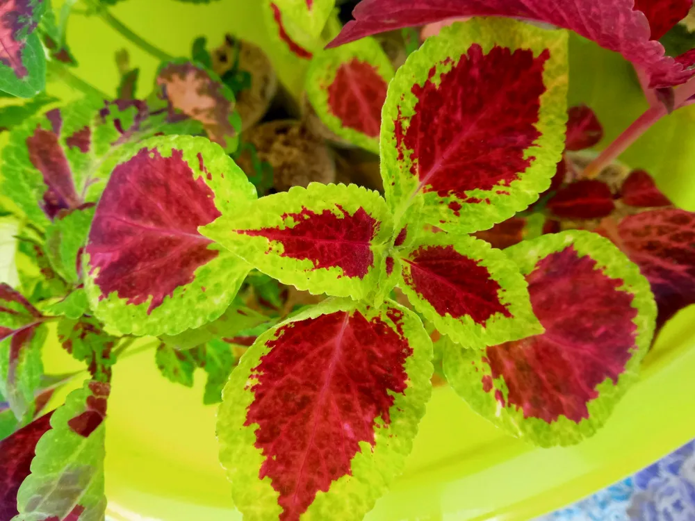 - Влажность: Колеус Тэррено пестрый любит влажный воздух. В жаркое время года рекомендуется опрыскивать листья водой или разместить горшок на поддоне с влажным мхом или галькой.