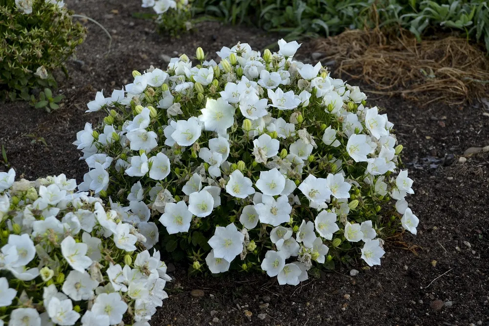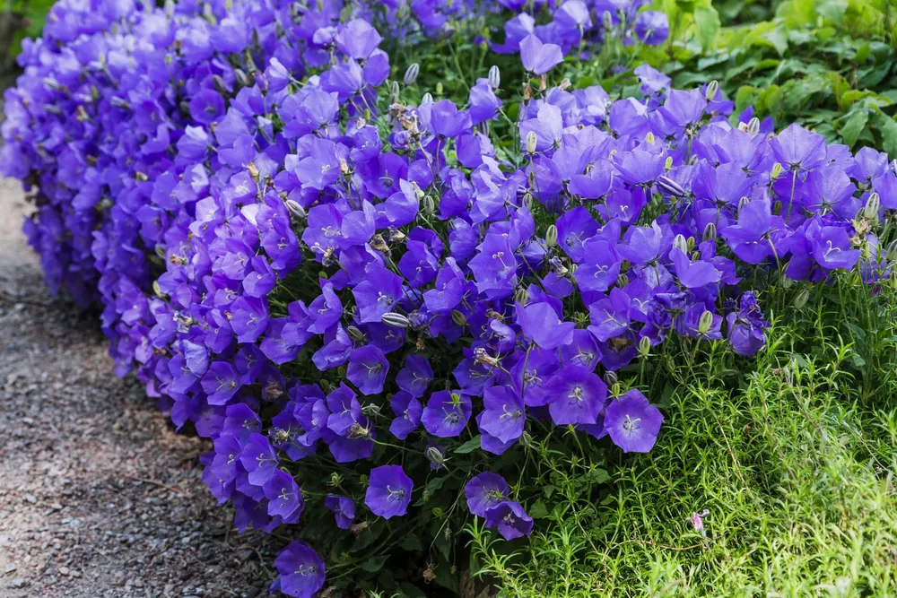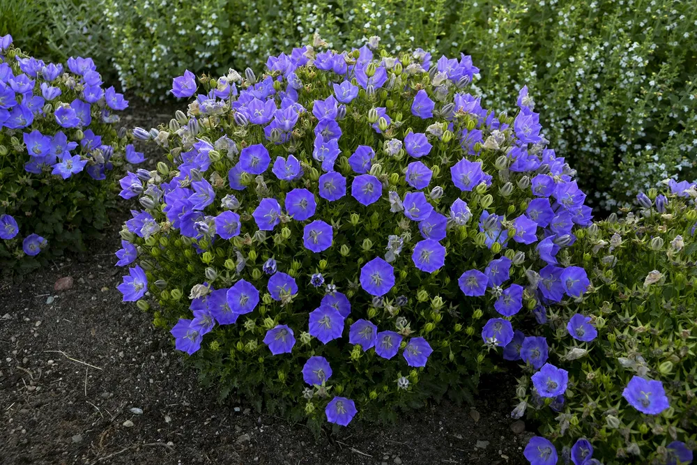 - Колокольчик карпатский ‘Блю Клипс’ может быть использован в качестве почвопокровного растения.