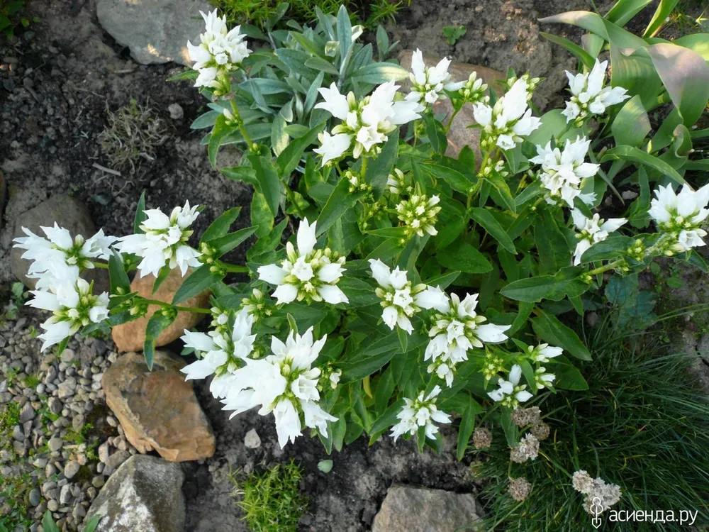 Колокольчик скученный Вайт (Campanula glomerata ‘White’ ) – это восхитительный сорт колокольчика, который покорил сердца садоводов своим изящным видом и неприхотливостью в уходе. Крупные, снежно-белые цветки собраны в плотные шарообразные соцветия, которые на вершинах прямостоячих цветоносов придают растению особую грациозность. В сочетании с декоративно-лиственными листьями колокольчик скученный Вайт создает гармоничный и привлекательный акцент в любом саду. Данный сорт относится к группе скученных колокольчиков, выведенных путем селекции для получения компактных кустов с обильным цветением. В природе встречается в южной Европе на солнечных склонах и полянках. В садовом дизайне колокольчик скученный Вайт широко используется для создания бордюров, цветочных клумб, миксбордеров и каменистых горок. Освещение Колокольчику скученному Вайт требуется достаточное количество света для обильного цветения. Лучшим местом для его посадки будет участок с 6-8 часами прямых солнечных лучей в день. Однако, растение может также успешно расти и цвести в полутени, получая при этом не менее 4 часов прямых солнечных лучей. Почва Идеальная почва для колокольчика скученного Вайт должна быть: * **Кислая или нейтральная:** pH от 6 до 7. * **Хорошо дренированная:** чтобы избежать застоя воды, что может привести к гниению корней. * **Почвы с добавлением органических удобрений:** навоз, компост или перегной – улучшат структуру почвы и обеспечат растение питательными веществами. Полив Колокольчик скученный Вайт нуждается в умеренном поливе. Поливайте его регулярно, особенно во время жаркой и засушливой погоды. * **В период активного роста:** примерно 2-3 раза в неделю, обильно, чтобы вода пропитала весь земляной ком. * **Во время цветения:** полив следует увеличить до 1 раза в день, особенно в жаркую погоду. * **После цветения:** полив уменьшить до 1 раза в неделю, так как растение переходит в период покоя. **Ошибки при поливе:** * **Переувлажнение:** может привести к загниванию корней и гибели растения. * **Недостаточный полив:** приведет к увяданию листьев и поникновению цветков. Подкормка Колокольчик скученный Вайт нуждается в регулярной подкормке для обильного цветения. * **Периодичность:** подкармливать растение необходимо каждые 2-3 недели в период активного роста (с апреля по июль). * **Удобрения:** использовать комплексные минеральные удобрения с равным содержанием азота, фосфора и калия. **Важно**: не перекармливайте колокольчик скученный Вайт, так как это может привести к замедлению роста и снижению качества цветения. Формирование Формирование куста колокольчика скученного Вайт не требуется. Растение само по себе имеет компактную форму и хорошо сохраняет свою структуру. Однако, для поддержания декоративности можно периодически удалять отцветшие соцветия и сухие листья. Это стимулирует растение к повторному цветению и улучшает внешний вид куста. Сравнение с другими сортами Колокольчик скученный Вайт отличается от других сортов своей компактностью, обильным цветением и белоснежными цветками. * **Сорт ‘Alba’:** имеет более светлую окраску лепестков и более высокую кусту до 60 см. Тонкости выращивания * Колокольчики скученные прекрасно переносят сильные морозы, поэтому могут выдерживать зимовку без укрытия в большинстве регионов. * Для получения обильного цветения рекомен