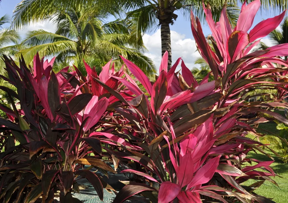 Cordyline australis – это крупный сорт с густыми, ланцетными листьями и красными соцветиями. Cordyline fruticosa отличается более компактной формой, а листья имеют зелёную или красную окраску в зависимости от сорта.