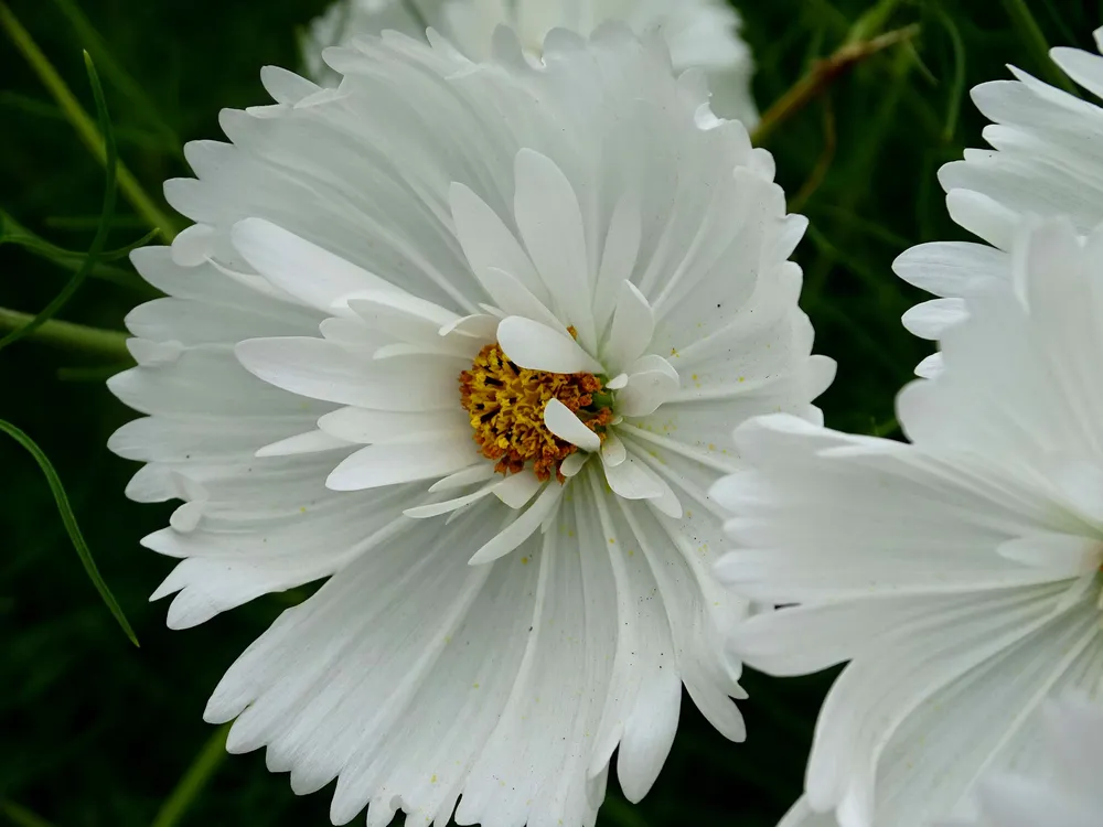 Космея Махровые Психе Вайт – это восхитительный сорт космои, который покоряет сердца цветоводов своей невероятной красотой и неприхотливостью. Ее белоснежные махровые цветы создают нежный контраст с темно-зеленой листвой, наполняя сад воздушностью и романтикой. Психе Вайт – это результат селекционных работ, направленных на создание более пышных и ярких сортов космои. Ее отличительной чертой является необычайно густая, махровая структура цветков, состоящая из множества мелких лепестков, которые складываются в прекрасные «шарики». Эта особенность придает ей особую изысканность и делает ее особенно привлекательной для оформления букетов и садовых композиций.