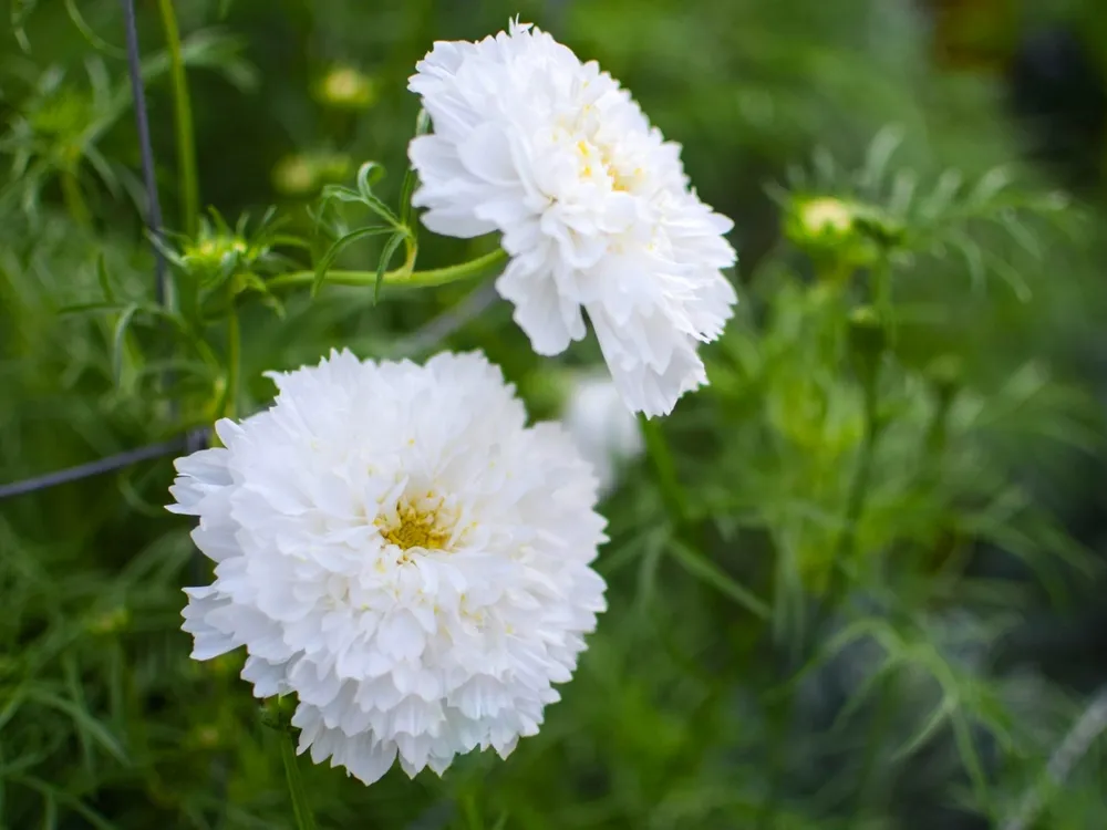 Космея Махровые Психе Вайт не нуждается в сложных формовочных приемах. Однако для поддержания кустистой формы можно регулярно удалять отцветшие цветки (пинцетом или ножницами) – это стимулирует образование новых бутонов и продлит период цветения.