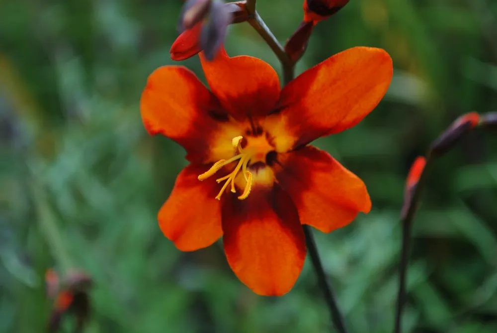 - Крокосмия ‘Black Beauty’**: Этот сорт имеет темно-красные цветы с черной каймой по краю лепестков.