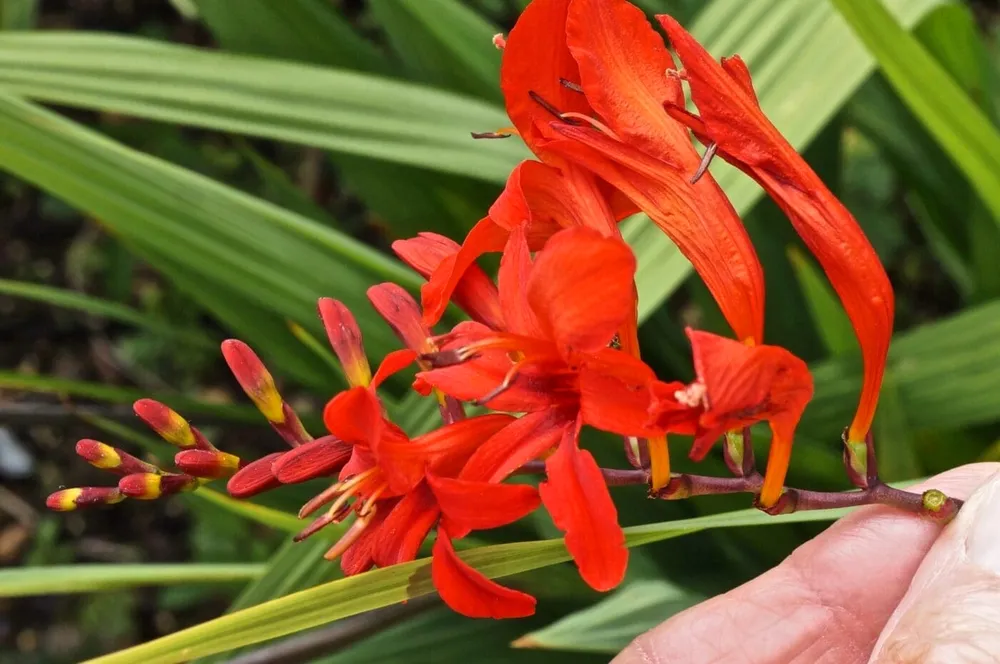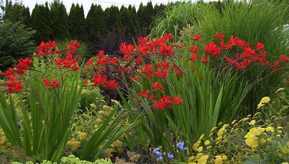 - Крокосмия гибридная ‘Роял Кинг’: имеет крупные, насыщенно красные цветки с желтым центром.