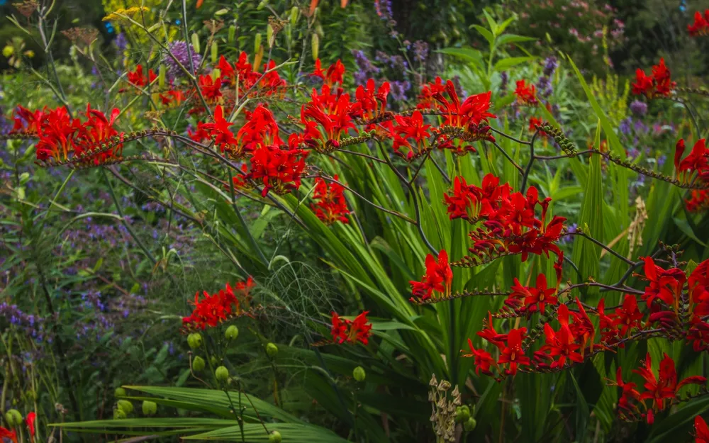 Крокосмия гибридная Файр Кинг выделяется среди других сортов своей яркой красной окраской цветков и продолжительным периодом цветения. Среди популярных сортов крокосмий можно отметить: