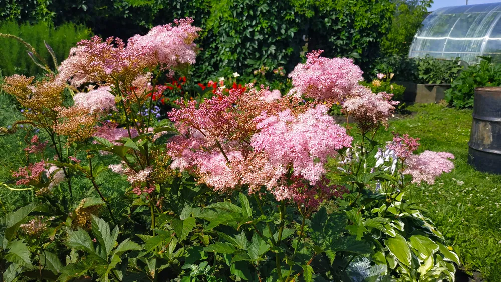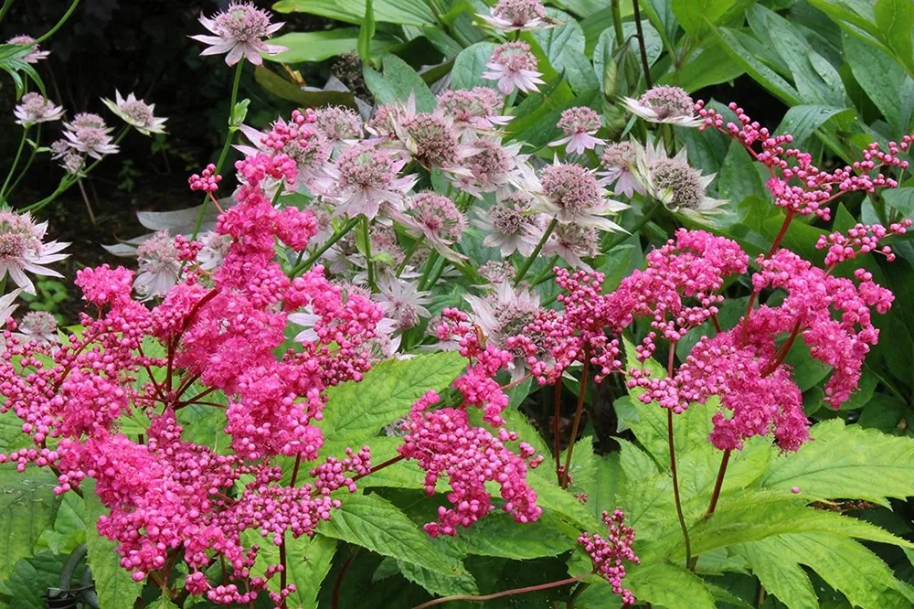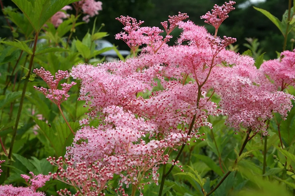 Лабазник Пурпл выделяется среди других сортов лабазника своими яркими, пурпурно-красными цветками и более компактным размером куста (до 1 метра в высоту).
