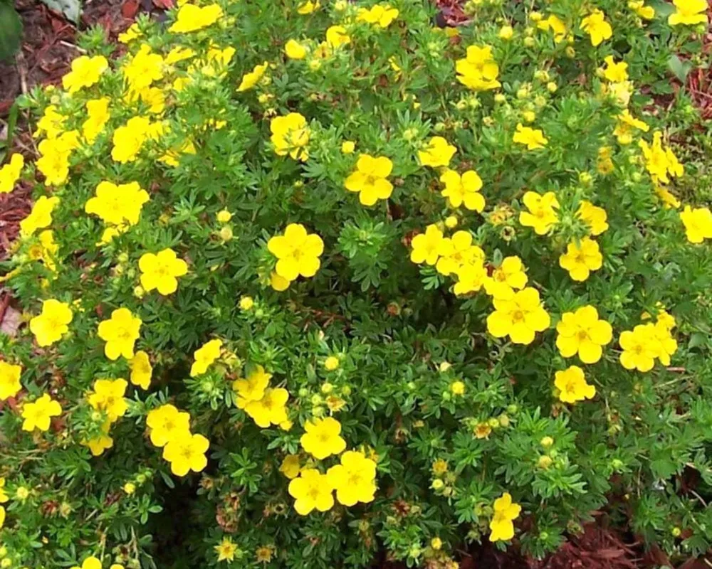 Этот гибридный сорт, выведенный селекционерами в конце XX века, сочетает в себе лучшие качества лапчатки кустарниковой. Он обладает компактными размерами, густой кроной из мелких листиков и обильным цветением яркими махровыми цветками.