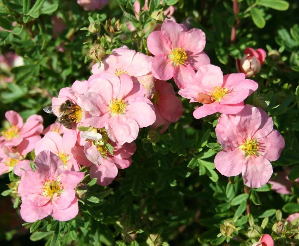 Лапчатка кустарниковая Принцесс — это очаровательный сорт лапчатки, выведенный селекционерами для декоративных целей. Ее пышные, яркие соцветия и компактный размер делают ее желанным гостем на любом цветнике. Сорт был разработан специально для выращивания в контейнерах и садовых клумбах, где он может цвести обильно в течение всего теплого сезона. Лапчатка кустарниковая Принцесс — это небольшой кустарник высотой до 40-50 см и шириной около 30 см. Листья этого сорта имеют изящную форму, темно-зеленый цвет и приятный аромат. Цветки лапчатки Принцесс — это настоящее украшение сада. Они собраны в густые соцветия по 15-20 штук и окрашены в яркие оттенки розового с белым центром. Цветение начинается в начале лета и продолжается до первых заморозков. Лапчатка кустарниковая Принцесс привлекает не только своим декоративным внешним видом, но и своей неприхотливостью к условиям выращивания.