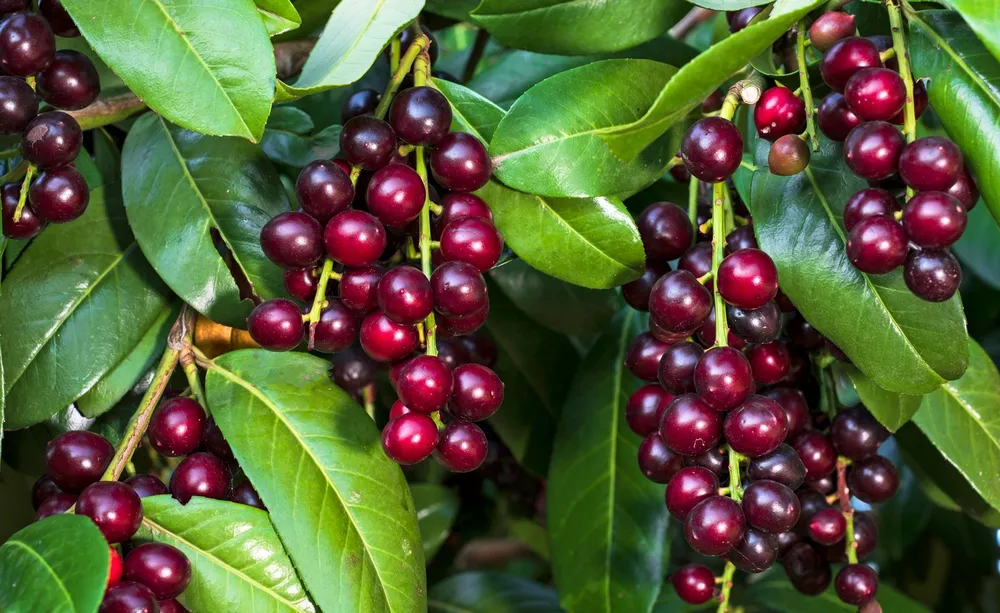 Лавровишня Черри Бренди – это настоящее украшение сада. Ее глянцевые листья темно-зеленого цвета создают густую крону, которая красиво смотрится круглый год. В мае-июне на дереве появляются ароматные белые цветы, собранные в соцветия. В конце лета созревают плоды – маленькие шарообразные ягоды с красновато-фиолетовой кожицей и сладким, слегка терпким вкусом.