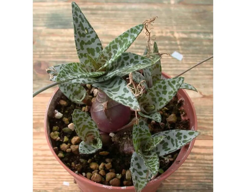 Ледебурия – это род многолетних травянистых растений семейства лилейных, насчитывающий около 30 видов. Название рода дано в честь немецкого ботаника Готлиба Ледебури (Gotthelf Ledebour), который занимался изучением растительности Кавказа. Род ледебурий распространен в Южной Африке, где они произрастают преимущественно на сухих каменистых склонах и скалах. Это удивительные растения, примечательные своими привлекательными декоративными листьями и необыкновенными цветами, которые распускаются прямо из земли. Ледебурии обладают своеобразной текстурой листьев – они могут быть гладкими или бархатистыми, с разнообразными оттенками зеленого, синего, фиолетового и даже красного. Цветонос растения не превышает 15 см в высоту, но на его верхушке образуется соцветие из мелких цветков, которые привлекают своим необычным окрасом: от белого до розового, с прожилками лилового или желтого цвета.
