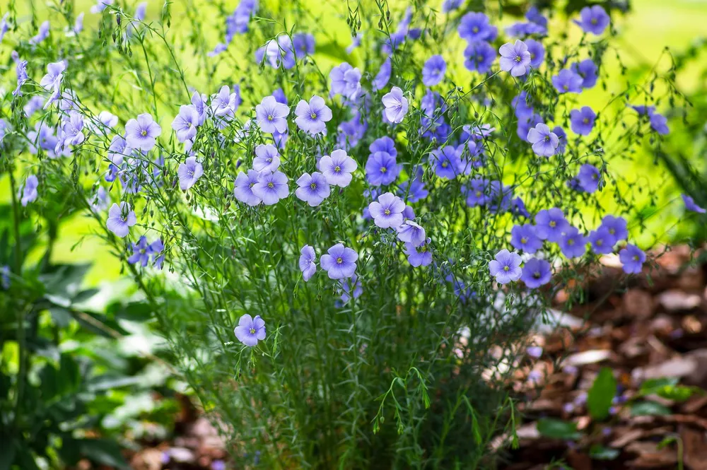 Освещение: Лен Мозаика предпочитает солнечные места с не менее 6 часов прямых солнечных лучей в день. В полутени он может цвести, но бутоны будут меньше по размеру.