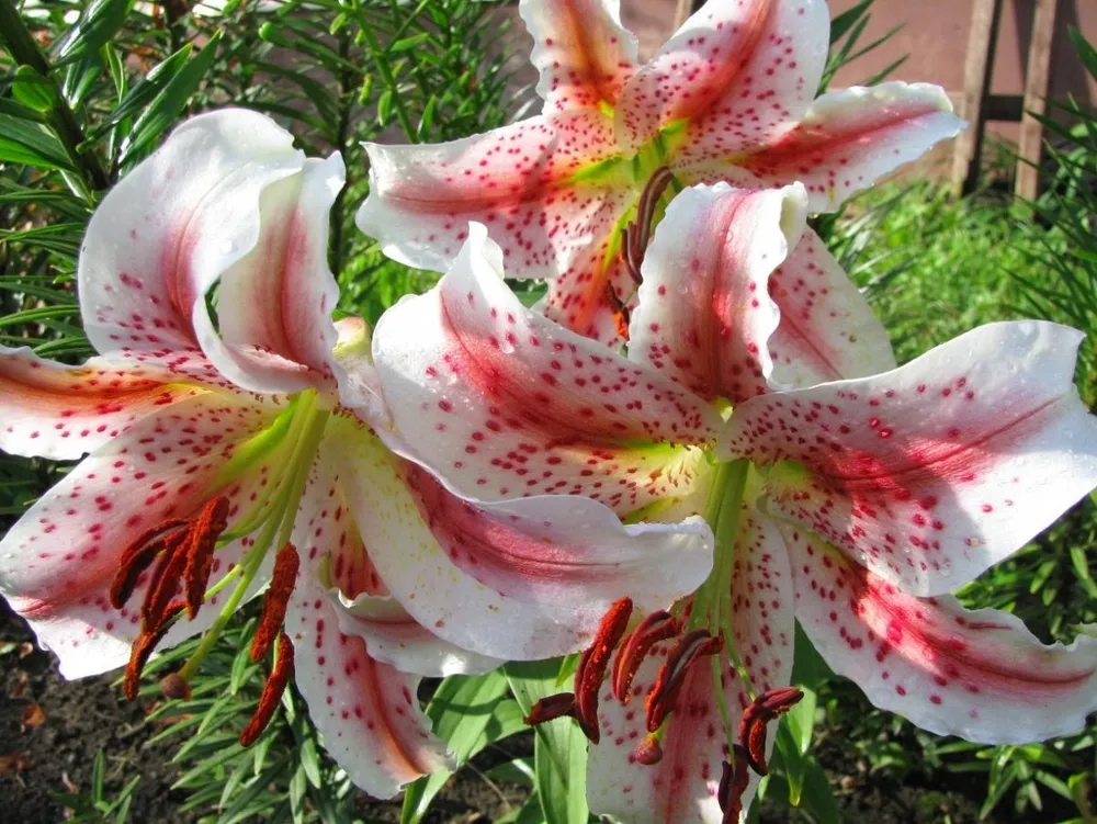 - Подготовка к зиме: Лилия Диззи является достаточно морозостойким сортом, но в регионах с холодными зимами рекомендуется утеплить куст лилии лапником или другим укрывным материалом.
