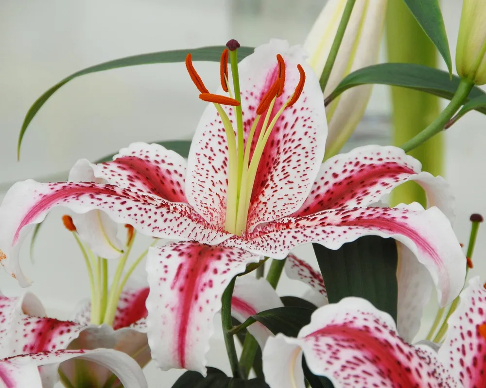 - По сравнению с лилией Stargazer: Лилия Диззи имеет более светлый окрас и более махровые цветки.