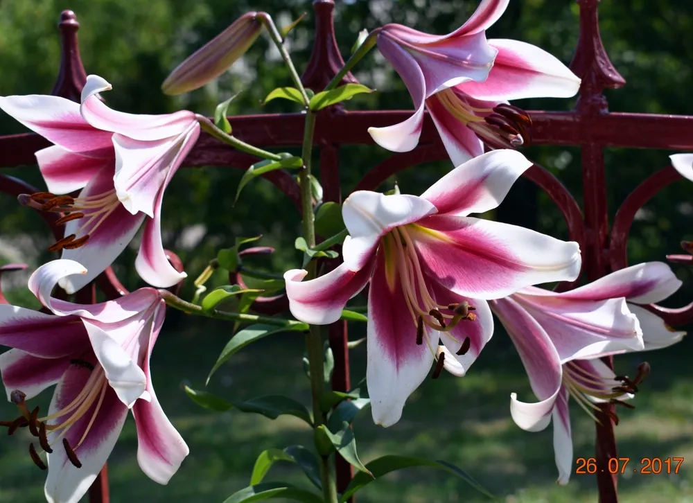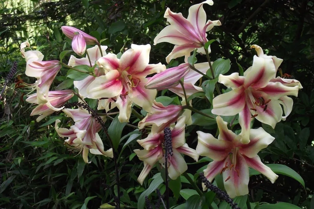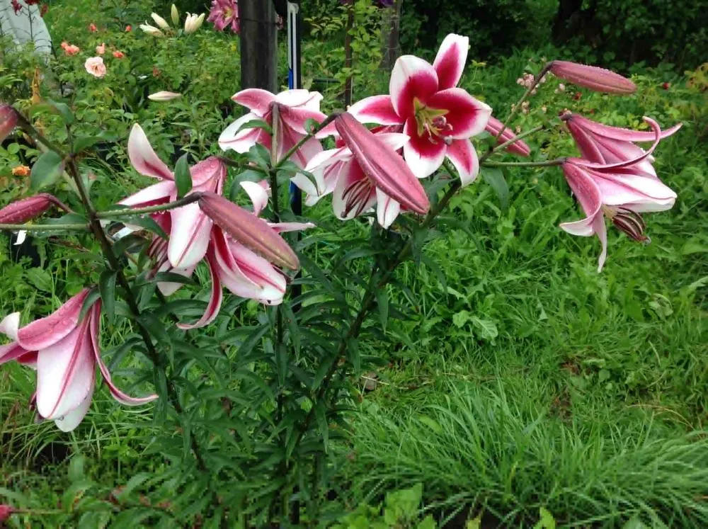 Эта лилия выделяется своей уникальной окраской: белый фон с яркими розовыми разводами и прожилками. Несмотря на свою красоту, лилия Фризо обладает высокой устойчивостью к болезням и вредителям, что делает ее отличным выбором для начинающих цветоводов.