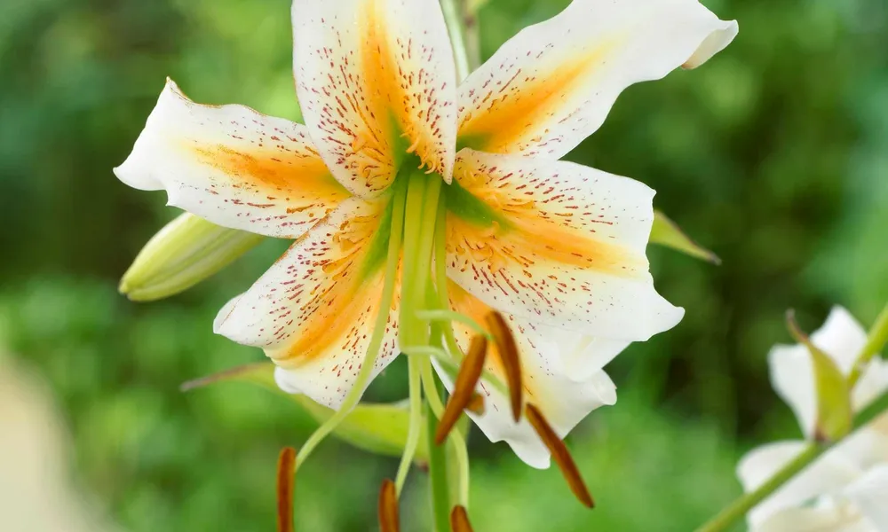 Лилия Гвен – это сорт, который покоряет сердца цветоводов своей неповторимой красотой и изящностью. Ее лепестки напоминают шелк, а цвет раскрывается в тонкой гамме кремовых и белых оттенков с легким розовым румянцем. Этот гибридный сорт был выведен селекционерами в 1980 году и сразу же завоевал популярность среди любителей лилий. Лилия Гвен относится к группе восточных гибридов, отличающихся крупными цветами и насыщенным ароматом. Ее цветы достигают в диаметре до 20 см и состоят из множества лепестков, которые образуют пышный бутон с волнистыми краями. Куст лилии Гвен может вырастать до 1,2 метра в высоту, а его листья – темно-зеленые и узкие, придающие растению стройный вид. Лилия Гвен – идеальный вариант для украшения сада или клумбы, а также для создания восхитительных букетов.