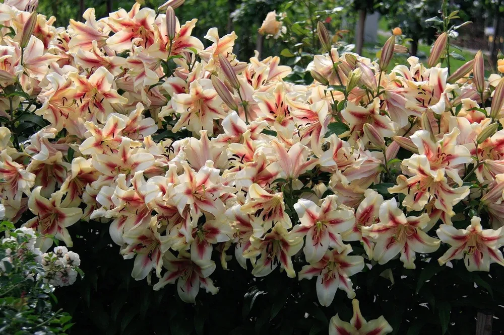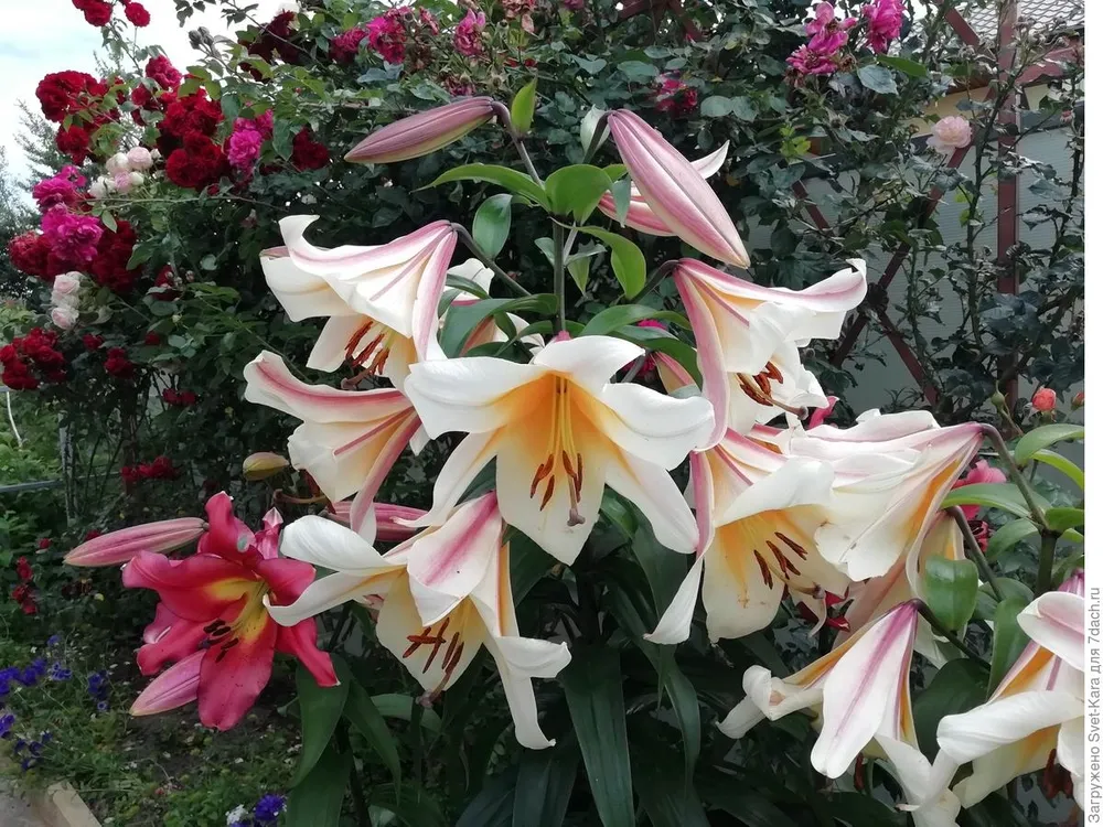 Лилия Лавон, также известная как гигантская лилия, относится к группе гибридных лилий восточного типа, выведенных селекционерами в начале 20 века. Ее название произошло от французского слова lavon, что переводится как лавандовый. Это впечатляющее растение отличается крупными цветками диаметром до 15 см, собранными в соцветия по 3-4 штуки на высоком цветоносе, который может достигать высоты 120-150 см. Лилии Лавон заслужили свою популярность благодаря нежному кремовому цвету лепестков с едва заметной пурпурной каймой и восхитительному аромату.
