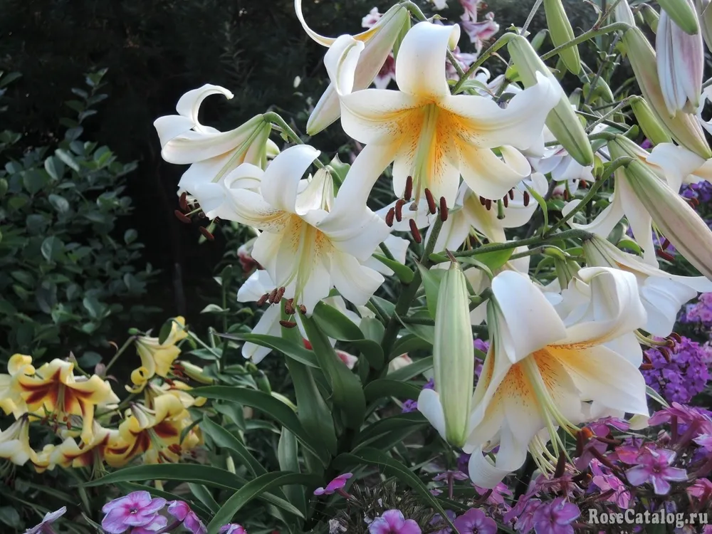 Среди гибридных лилий восточного типа Лилия Лавон выделяется своими крупными цветками кремового оттенка с пурпурной каймой. Она отличается более ранним цветением по сравнению с некоторыми другими сортами, такими как Stargazer или Casa Blanca.
