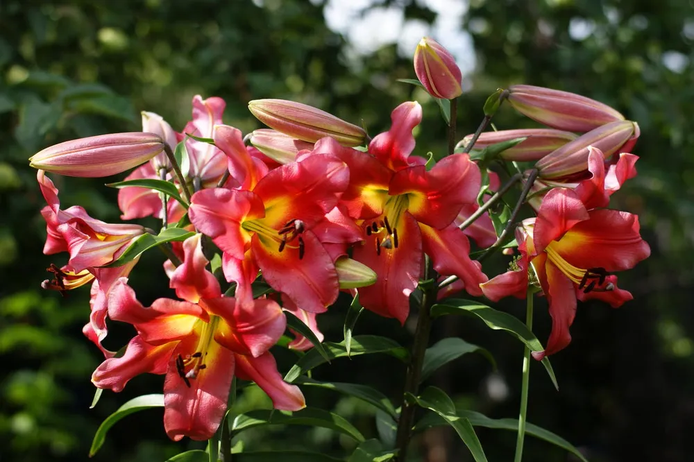Лилия Робина – это гибрид восточной лилии с легким ароматом, который раскрывается в полной мере вечером. Цветки этого сорта имеют насыщенный коралловый оттенок с желтоватыми краями лепестков и яркой, контрастной центральной чашечкой. Куст лилии Робина достигает в высоту 120-130 см и образует мощные, крепкие стебли с густой листвой. Лилия Робина относится к группе повторноцветущих сортов, что значит, что она может порадовать цветением дважды за сезон — ранним летом и поздним летом.