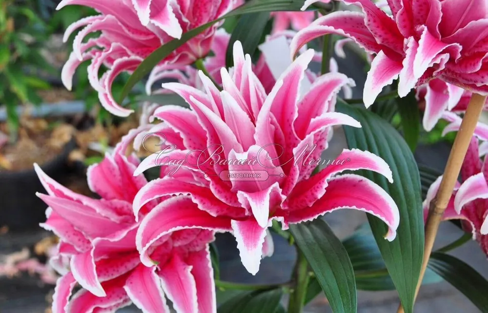 Внешне лилия Серано выделяется на фоне других сортов благодаря своей необычной окраске: лепестки имеют насыщенный темно-розовый оттенок с кремово-белым центром, а по краям присутствует яркий желтый ободок. Эта жемчужина цветочных композиций поражает своей пышностью и величиной цветков. Растение отличается высокой устойчивостью к болезням и вредителям, что делает его отличным выбором для начинающих цветоводов.