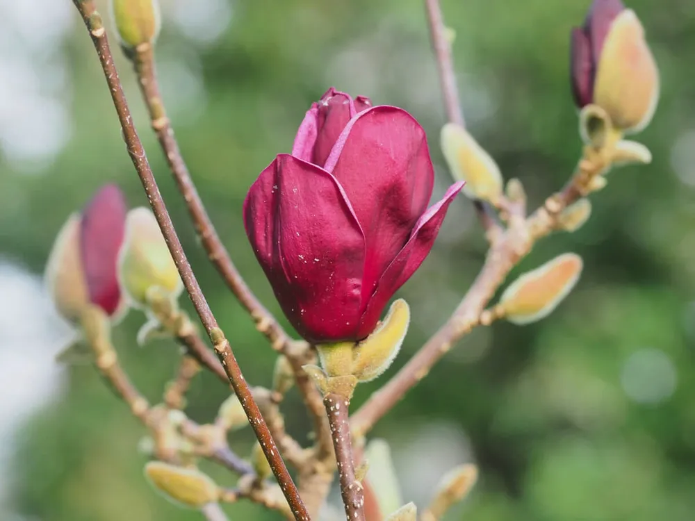 Магнолия Джени (Magnolia ‘Jenny’) – это гибрид магнолии кустарниковой (Magnolia stellata) и магнолии южной (Magnolia soulangeana), выведенный в Японии. Благодаря этому скрещиванию сорт унаследовал лучшие черты обоих родителей: прочность, неприхотливость и яркий красочный цвет.