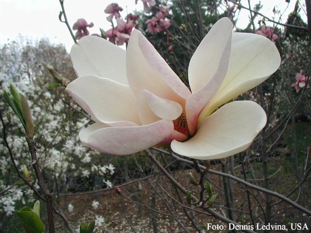 Магнолия Фейри Уайт Блаш – это сравнительно молодой сорт магнолии, выведенный селекционерами в начале XXI века. Он покорил сердца цветоводов своей изысканной красотой и неприхотливостью в уходе. Название сорта говорит само за себя: Фейри намекает на волшебную, сказочную природу цветка, а Уайт Блаш переводится как белое сияние, что идеально отражает окраску лепестков. Магнолия Фейри Уайт Блаш – это гибрид, полученный путем скрещивания магнолии Суланжи и магнолии кустарниковой, что позволило получить растение с высокой декоративностью и устойчивостью к неблагоприятным условиям. Уход за Магнолией Фейри Уайт Блаш В целом магnolia Fairy White Blush нетребовательна в уходе, но для ее пышного цветения и здоровья необходимо обеспечить ей комфортные условия выращивания. #Освещение: Магнолия Фейри Уайт Блаш предпочитает хорошо освещенные места с рассеянным солнечным светом. Она может выносить легкую полутень, но в этом случае количество цветков будет меньше. В жаркие летние дни прямые солнечные лучи могут обжечь листья растения, поэтому лучше всего размещать его на восточном или западном склоне. #Почва: Для хорошего развития корневой системы магнолии Фейри Уайт Блаш необходима плодородная, слабокислая почва с хорошим дренажем. Идеальный pH колеблется в пределах 6.0-7.0. Почву перед посадкой необходимо обогатить органическими удобрениями, например, компостом или перегноем. #Полив: Магнолия Фейри Уайт Блаш нуждается в регулярном поливе, особенно во время вегетационного периода (с весны до осени). Полив должен быть обильным, но не заливающим. Воду следует применять отстоянную и теплую. Зимой полив сокращается до минимума. #Подкормка: Подкормку магнолии Фейри Уайт Блаш необходимо проводить дважды в год: весной во время набухания почек и летом после цветения. Для этого можно использовать комплексное минеральное удобрение для цветущих растений или органические удобрения, например, раствор птичьего помета. Формирование Магнолия Фейри Уайт Блаш может достигать в высоту 2-3 метра, а ее диаметр около 1,5-2 метров. В зависимости от желаемой формы куста его можно формировать прищипыванием молодых побегов. Это поможет стимулировать ветвление и получить более густую крону. Осенью можно провести обрезку сухих, больных или поврежденных веток. Сравнение с другими сортами Магнолия Фейри Уайт Блаш отличается от многих других сортов своей неприхотливостью в уходе. Она более устойчива к болезням и вредителям, чем некоторые другие виды магнолий. Кроме того, она цветет обильно и продолжительно, радуя глаз с конца весны до середины лета. Тонкости выращивания * Для успешного цветения магнолии Фейри Уайт Блаш необходимо обеспечить ей хорошее освещение и защитить от сквозняков. * В холодных регионах магнолия может нуждаться в дополнительной зимозащите, например, укрытие лапником или нетканым материалом. Мнение автора Магнолия Фейри Уайт Блаш – это прекрасный выбор для тех, кто хочет украсить свой сад красивыми цветками и не готов тратить много времени на уход за растением. Она легко адаптируется к различным условиям выращивания и будет радовать вас своими белыми цветами многие годы. Общий вывод Магнолия Фейри Уайт Блаш – это замечательный сорт магнолии, который сочетает в себе красоту, неприхотливость и устойчивость к болезням. Соблюдая правила ухода за этим