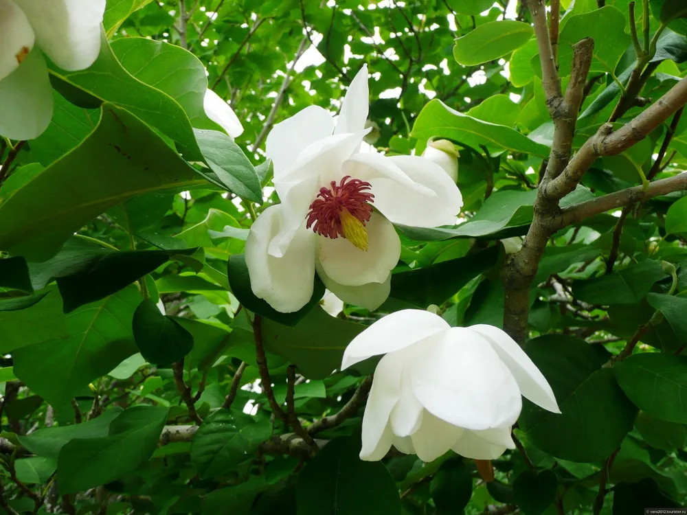 Магнолия Зибольда – это потрясающее дерево с декоративными крупными цветками и красивой листвой. Она представляет собой вечнозелёный кустарник или небольшое дерево высотой до 8 метров, с широкой кроной и густой листвой. Цветы магнолии Зибольда раскрываются в середине весны, а их аромат наполняет сад приятными нотками. Цветоводы ценят этот сорт за его неприхотливость и способность цвести даже в условиях умеренно-континентального климата.
