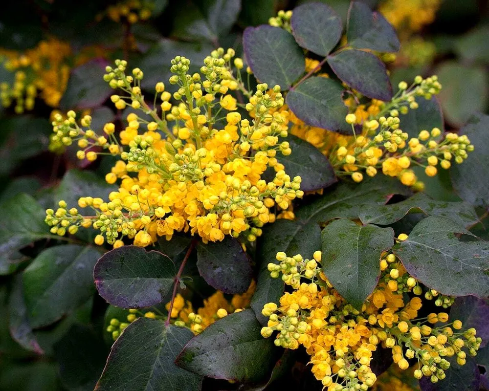 Магония ‘Winter Sun’ отличается от других сортов своей зимостойкостью и яркими желтыми цветками.