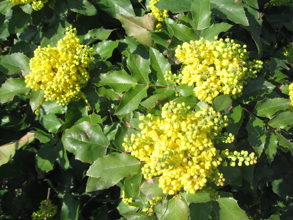 Магония ‘Apollo’ характеризуется более крупными листьями и густой кроной, а Магония ‘Charity’ — устойчивостью к болезням.