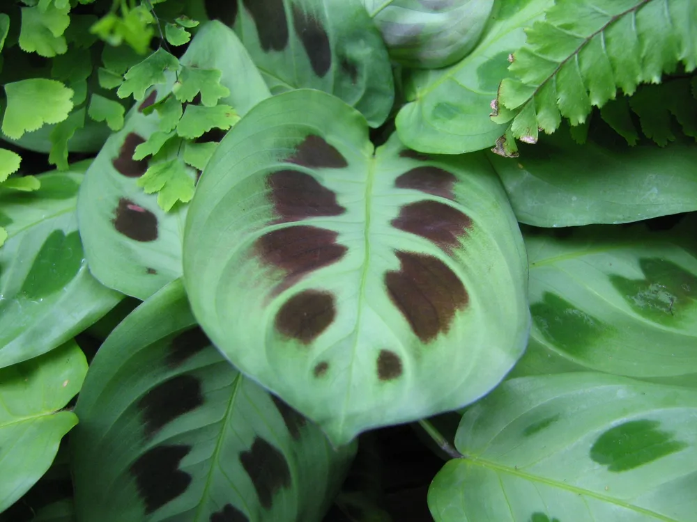 Маранте предпочитает яркий, но рассеянный свет. Прямые солнечные лучи могут обжечь ее листья, вызывая появление коричневых пятен.