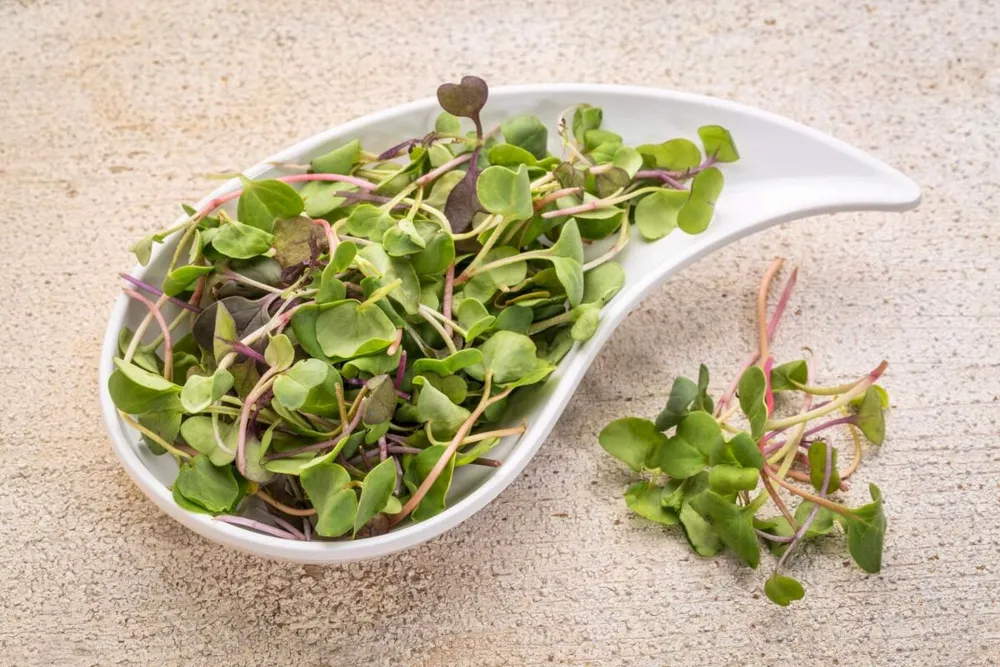 Например, микрозелень редиса имеет более нежный вкус и светлую зеленую окраску.