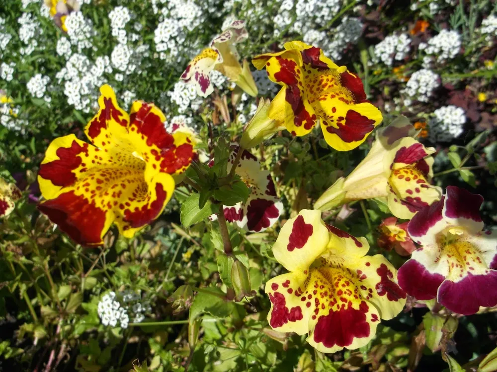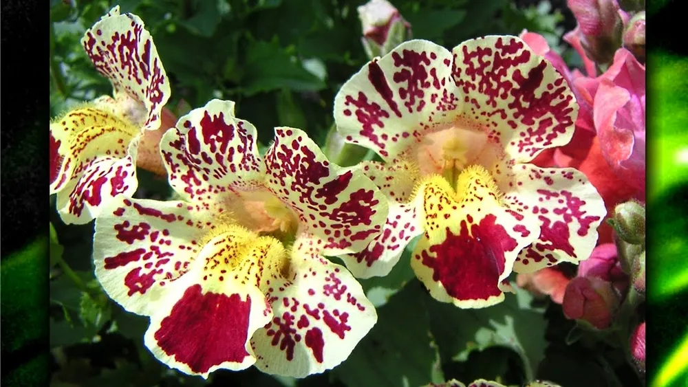 Это растение может достигать высоты до 60-80 сантиметров, но его красота не только в размерах. Мимулюс Водевиль выделяется крупными цветами, которые могут варьироваться от чисто-белого до насыщенного розового и красного цвета. Цветы имеют форму воронки или колокольчика и собраны по несколько штук в кистевидные соцветия. Они источают приятный, легкий аромат, который привлекает насекомых-опылителей.