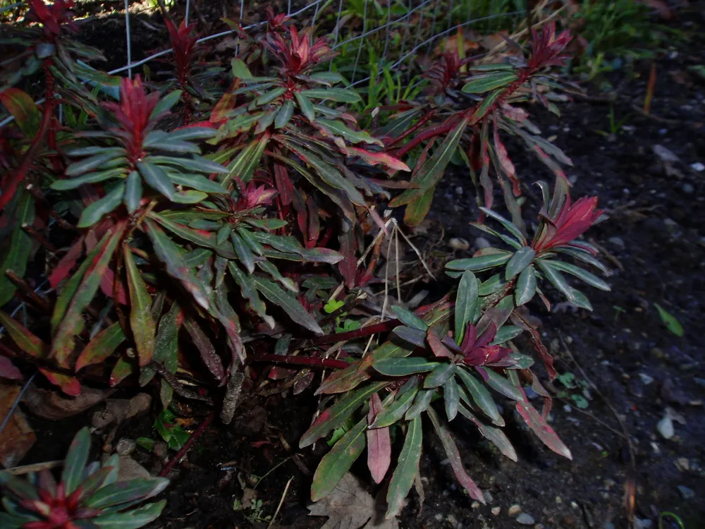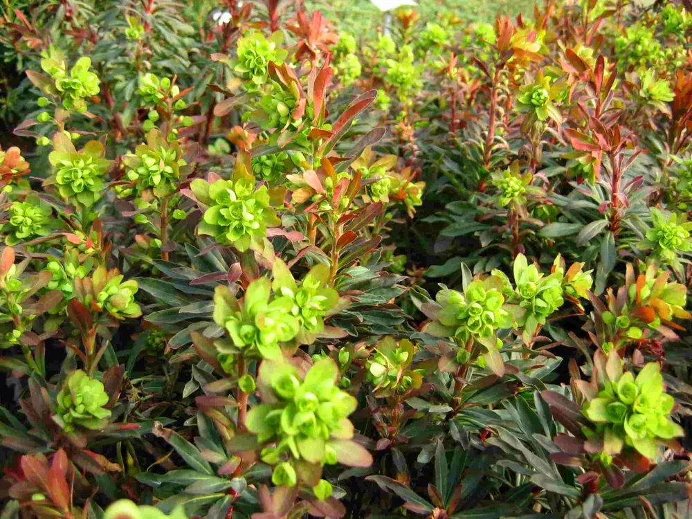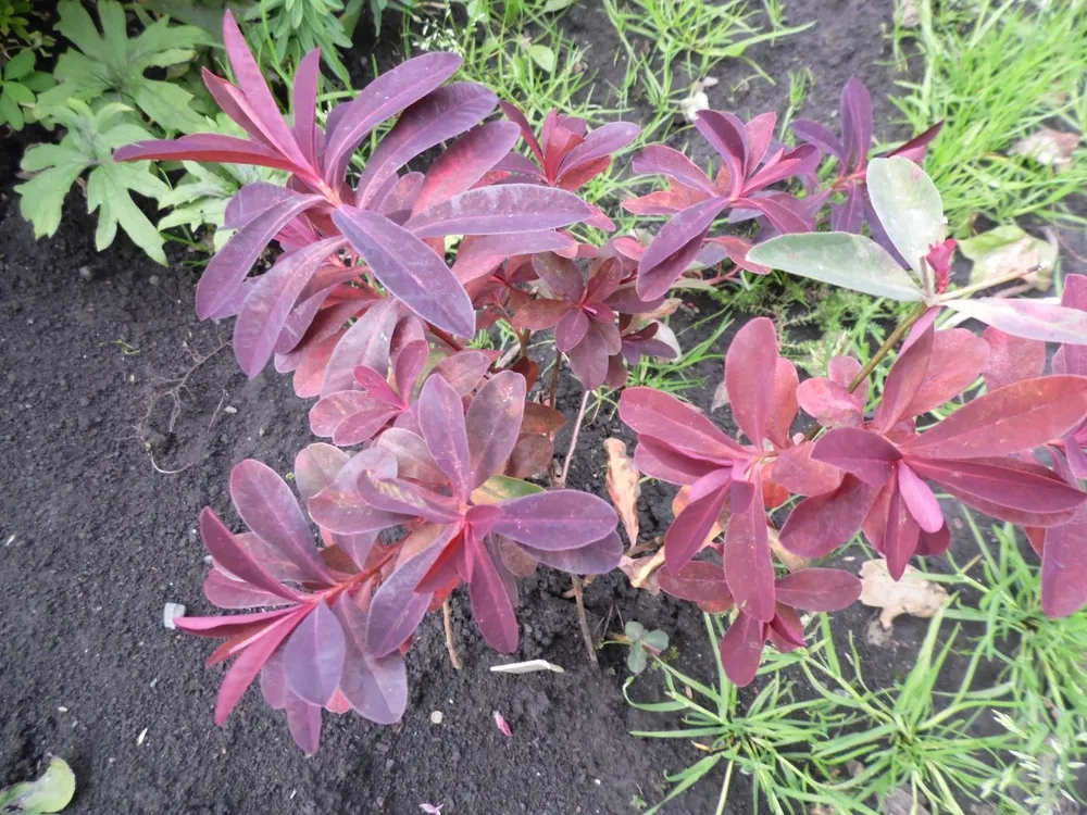 Молочай миндалевидный ‘Пурпурея’ не нуждается в частой обрезке, но для поддержания формы куста и стимуляции обильного цветения можно проводить легкую санитарную обрезку весной, удаляя сухие, поврежденные или отмершие побеги.