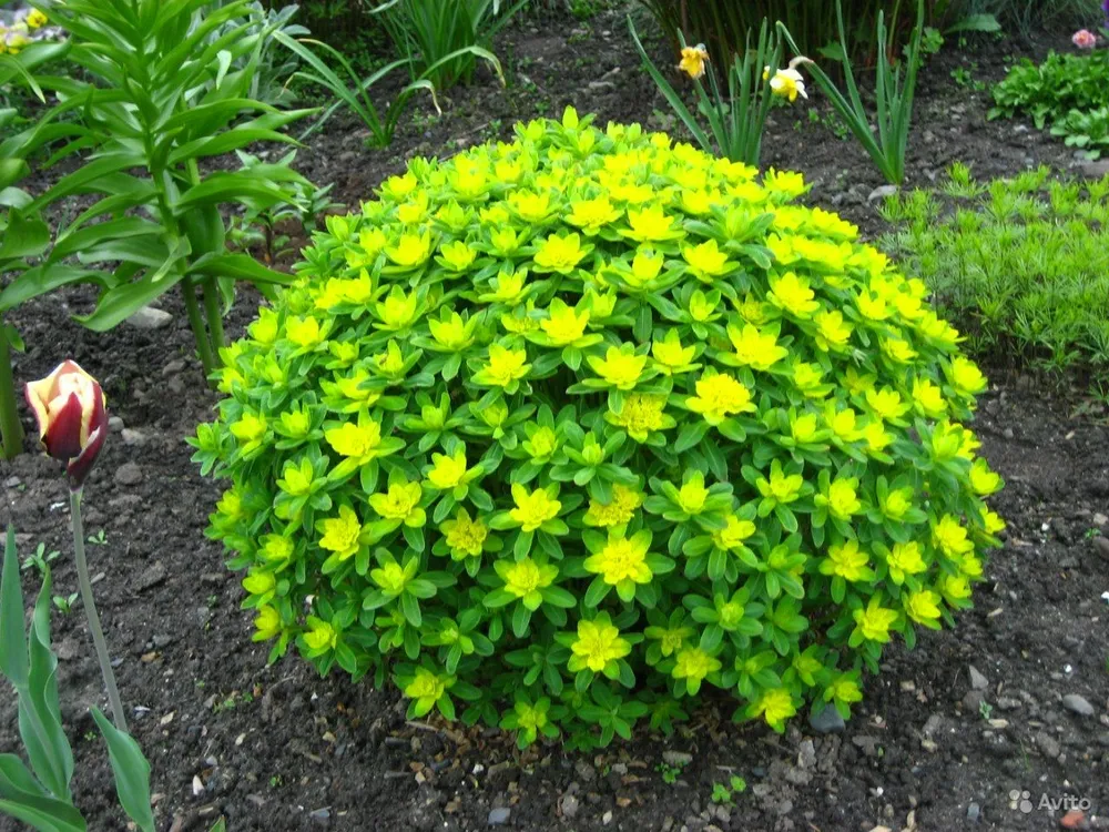 Молочай многоцветный нуждается в регулярных подкормках для обильного цветения и здорового роста. В период активного вегетационного сезона (с апреля по сентябрь) его можно подкармливать каждые 2-3 недели комплексным минеральным удобрением для цветущих растений. В осенний период подкормки прекращают. Формирование Молочай многоцветный не требует особого формирования, но по мере роста его можно прищипывать верхушки побегов для стимуляции кущения и получения пышного кроны. Это также поможет избежать перерастания растения и поддержать компактную форму. Сравнение с другими сортами Молочай многоцветный отличается от других сортов молочая, таких как Молочай пурпурный или Молочай белый, более мелколистной листвой и обильным цветением. Его соцветия-головки, состоящие из множества мелких цветков, создают пышное облако яркого цвета, украшающее сад с середины лета до первых заморозков. Тонкости выращивания * Молочай многоцветный не переносит морозов и нуждается в защите на зиму. В холодных регионах его лучше высаживать в контейнер и заносить в помещение или укрывать лапником. * При посадке молочая многоцветного необходимо учитывать, что он имеет млечный сок, который может вызвать раздражение кожи. При работе с растением рекомендуется использовать перчатки. Мнение автора и общий вывод Молочай многоцветный — это прекрасный выбор для тех, кто ищет неприхотливое, декоративное растение с ярким цветением. Его легко выращивать даже в условиях средней полосы России при соблюдении основных правил ухода. Несмотря на свою простоту, молочай многоцветный способен украсить сад и внести в него нотку летнего колорита.
