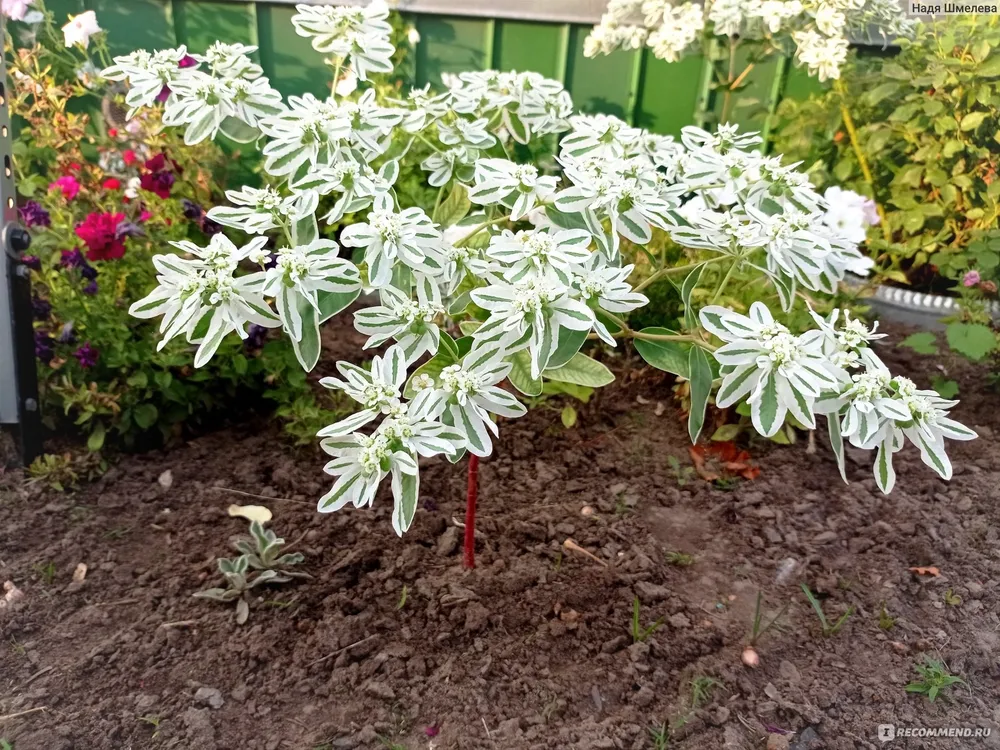 Молочай окаймленный ‘Горный снег’ — это декоративный сорт молочая, выведенный для украшения садов и ландшафтных дизайнов. Он привлекает внимание необычными бело-розовыми соцветиями, а также компактной формой куста и неприхотливостью в уходе. Этот сорт является отличным выбором для начинающих цветоводов, так как он достаточно устойчив к болезням и вредителям.