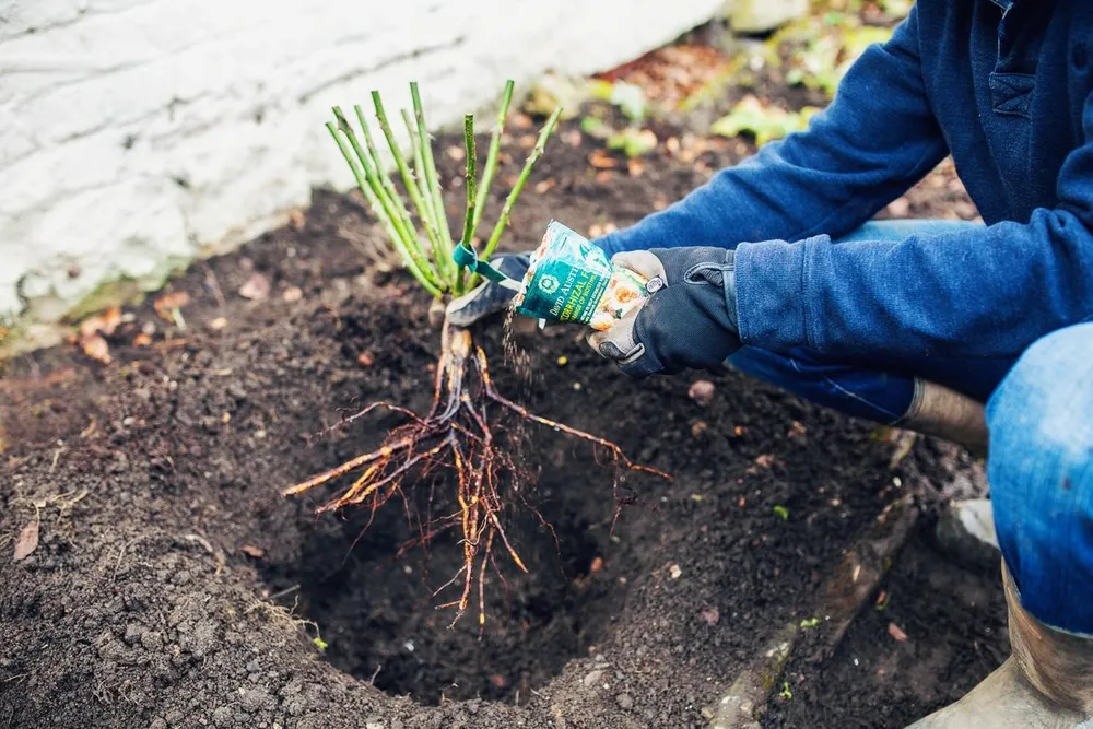 - Затем следует засыпать почву из плодородного слоя земли и перегноя.